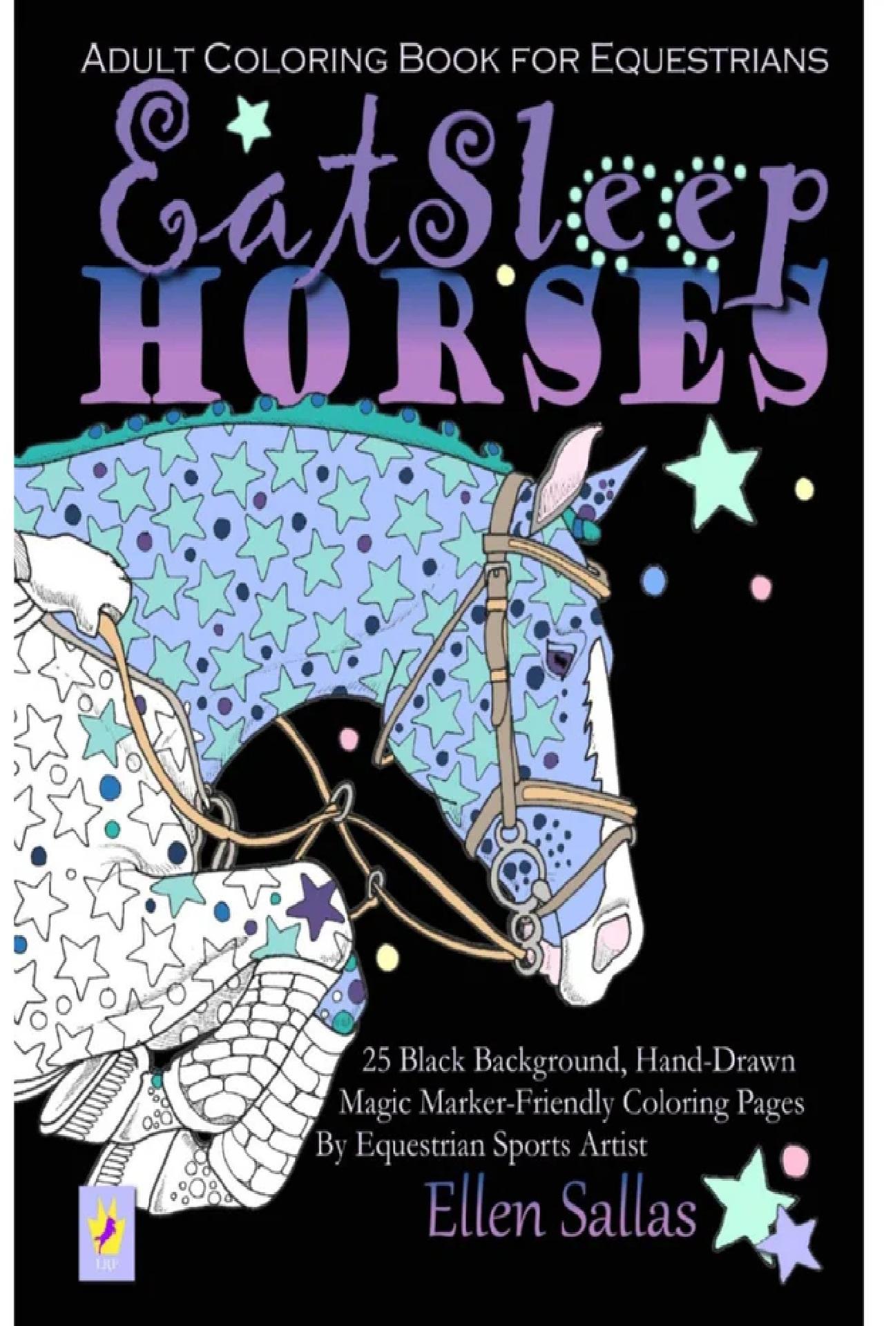 Adult Eat Sleep Horses Coloring Book by Ellen Sallas Horse lovers know--the best times of our lives are spent with our equines! This coloring book gives homage to riders and the horses they love. English, Western, and just plain horse adoration is found inside with 25+ coloring pages with dramatic black background, printed on one side so you can use magic markers if you like. Paper is also excellent for pencil and wax crayons. 25 one sided coloring pages, 8½ x 11