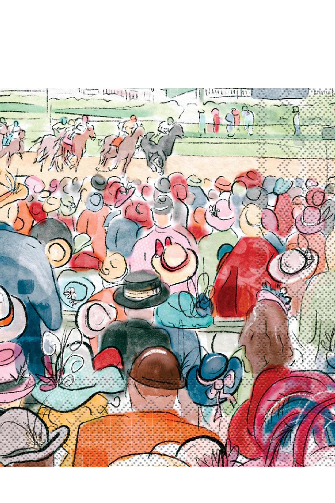 Spirited watercolor derby race with spectators