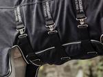 Three adjustable straight surcingles, and wipe clean tail cord keep the blanket securely in place.